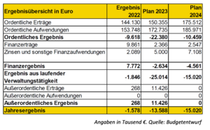 Zu weiteren Aufwendungen gehören die Zahlung von Zinsen für Investitionskredite (2024: 7.1 Mio €). Angesichts des ambitionierten Investitionsverhaltens der Stadt werden die Zinsverpflichtungen künftig kaum abnehmen.