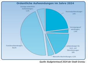 Wie die Grafik des Budgetentwurfs der Verwaltung zeigt, entstehen die größten Kosten beim Transfer staatlicher Leistungen (46,6%: Sozialleistungen, Zuschüsse an Kitas, Kreisumlage, Solidarhilfen) statt, also bei dem breiten Spektrum von Verpflichtungen, die Bund, Land und Kreis festlegen. Auch die wachsenden Aufwendungen für das Personal der Verwaltung lassen sich kaum beeinflussen (26%: man denke an den letzten Tarifabschluss des TVöD). Traurig genug, nur der notorische Fachkräftemangel sorgt für – unfreiwillige – Einsparungen: „Für das Jahr 2024 kann davon ausgegangen werden, dass stetig eine Anzahl von 15 VZÄ nicht besetzt werden können und die Personalkosten so eingespart werden können“. Weitere Kostenminderungen wären nur möglich, wenn auch Sach- und Dienstleistungen der Verwaltung (18%) reduziert würden. Dem stehen aber weiter wachsende staatlich festgelegte Pflichtaufgaben und Projektaufträge (v.a. durch den Rat entgegen).