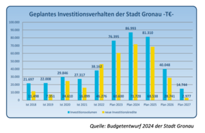 Trotz dieser Belastungen verfolgt die Stadt Gronau seit einigen Jahren ein umfangreiches Investitionsprogramm. Nach Ansicht der Fraktion Bündnis90/Die Grünen sind ambitionierte, nachhaltig ausgerichtete Zukunftsinvestitionen tatsächlich dringend erforderlich. Doch leider erklären der Bürgermeister und die Verwaltungsspitze das Zukunftspotential der investiven Maßnahmen den Bürgern nicht überzeugend und werben nicht dafür, weder im Haushaltsentwurf noch sonst.